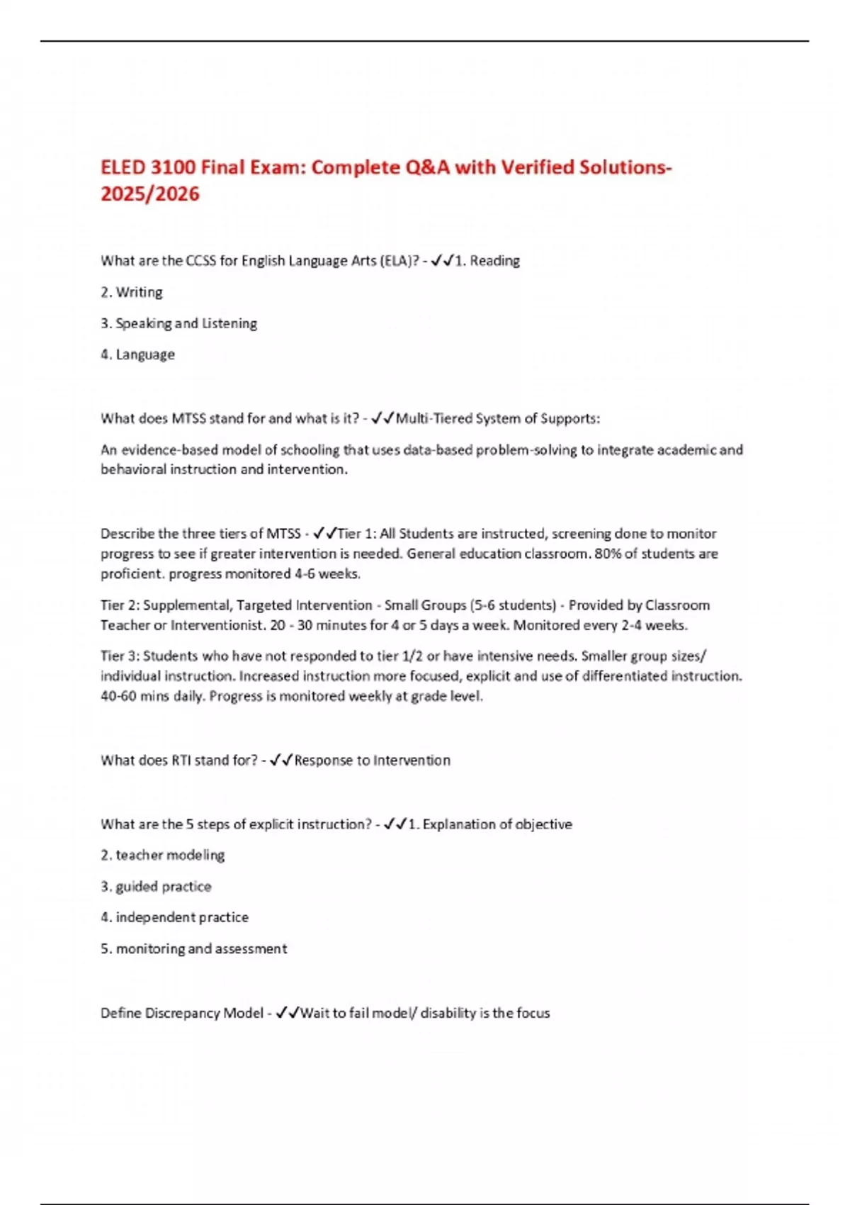 ELED 3100 Final Exam: Complete Q&A with Verified Solutions 2025/2026