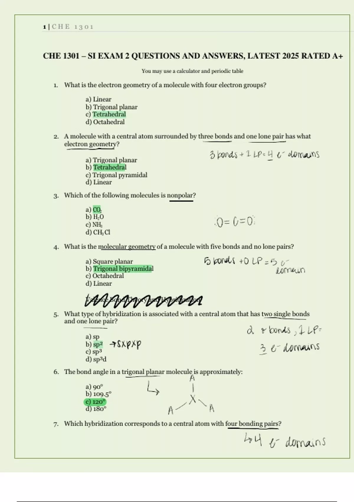 CHE 1301 – SI EXAM 2 QUESTIONS AND ANSWERS, LATEST 2025 RATED A+