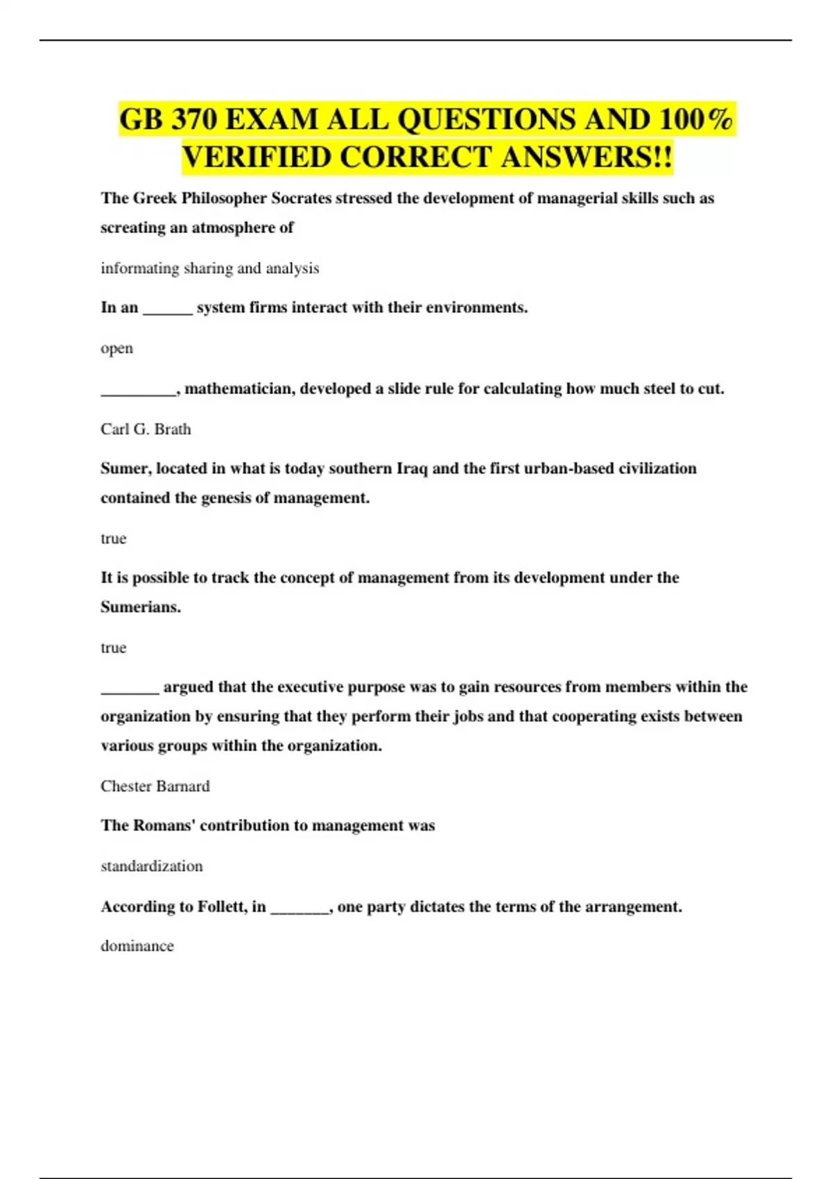 GB 370 EXAM ALL QUESTIONS AND 100%