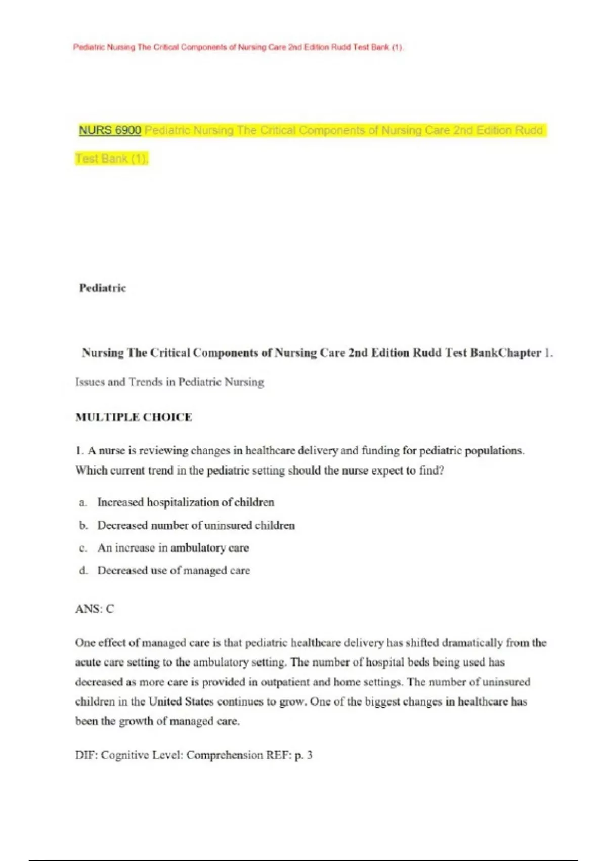 Pediatric Nursing The Critical Components of Nursing Care 2nd Edition Rudd Test Bank.Pediatric Nursing The Critical Components of Nursing Care 2nd Edition Rudd Test Bank.