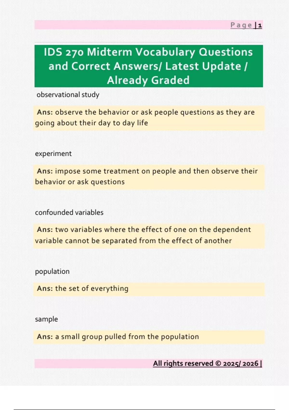 IDS 270 Midterm Vocabulary Questions and Correct Answers/ Latest Update / Already Graded