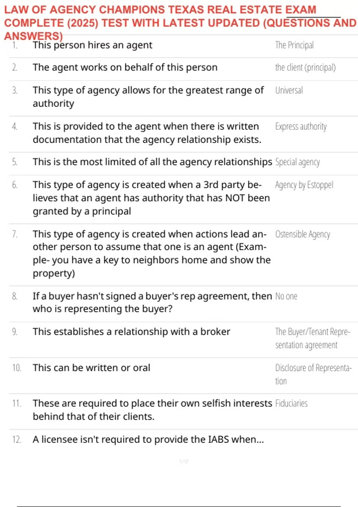 LAW OF AGENCY CHAMPIONS TEXAS REAL ESTATE EXAM
