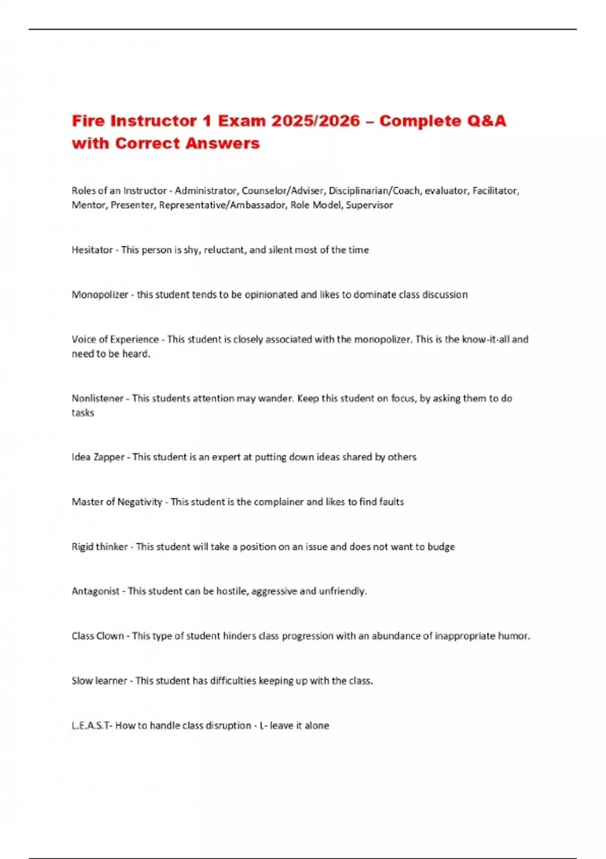 Fire Instructor 1 Exam 2025/2026 – Complete Q&A with Correct Answers