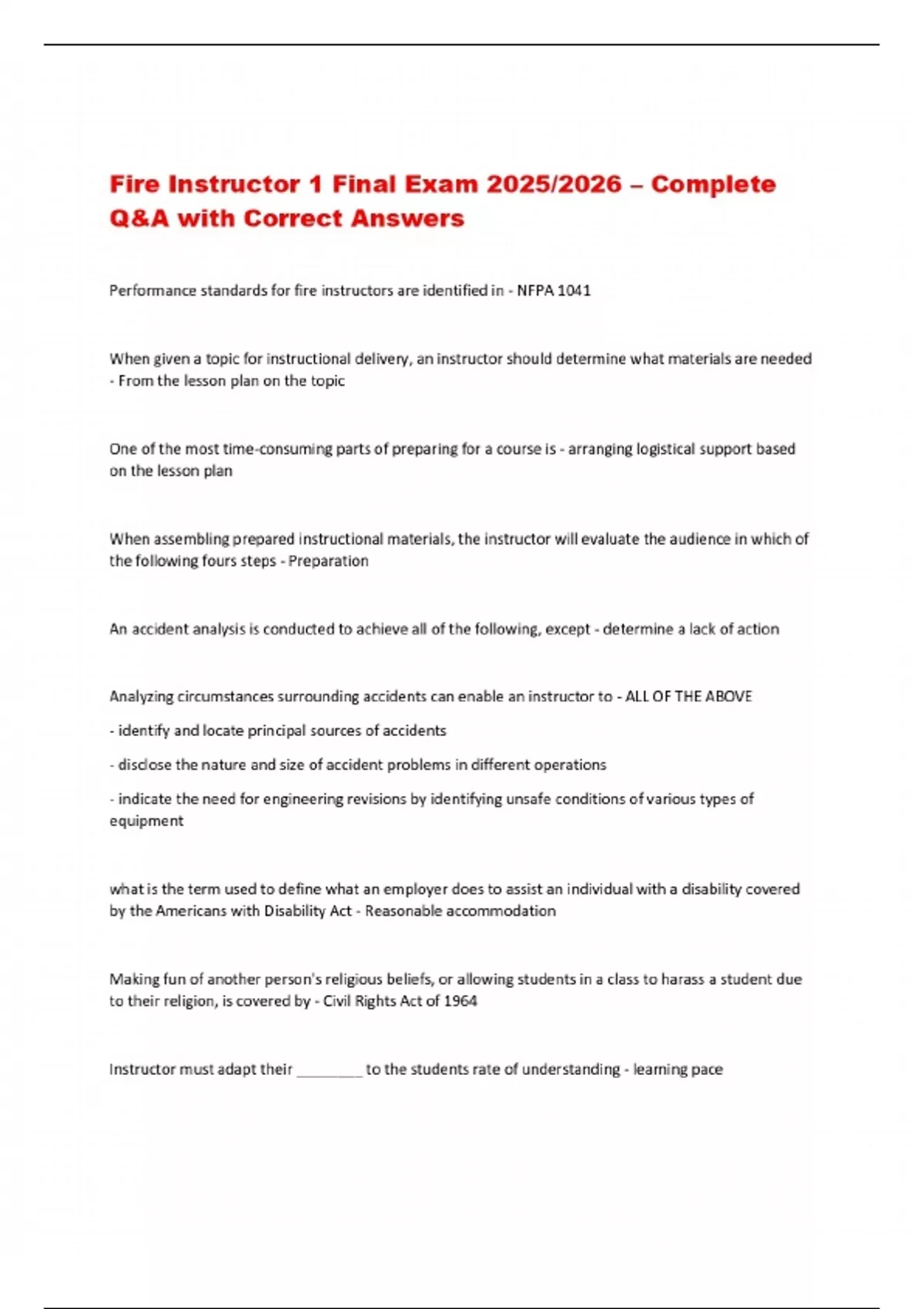 Fire Instructor 1 Final Exam 2025/2026 – Complete Q&A with Correct Answers