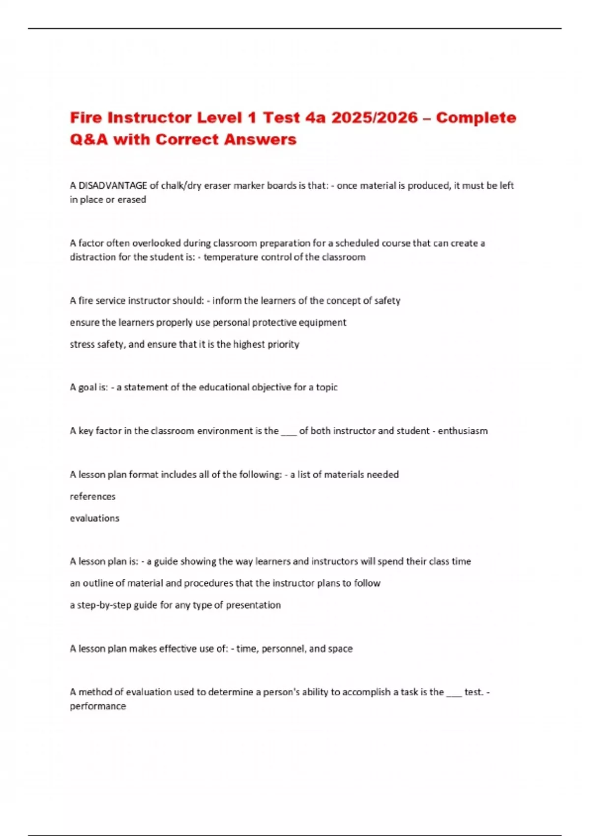 Fire Instructor Level 1 Test 4a 2025/2026 – Complete Q&A with Correct Answers