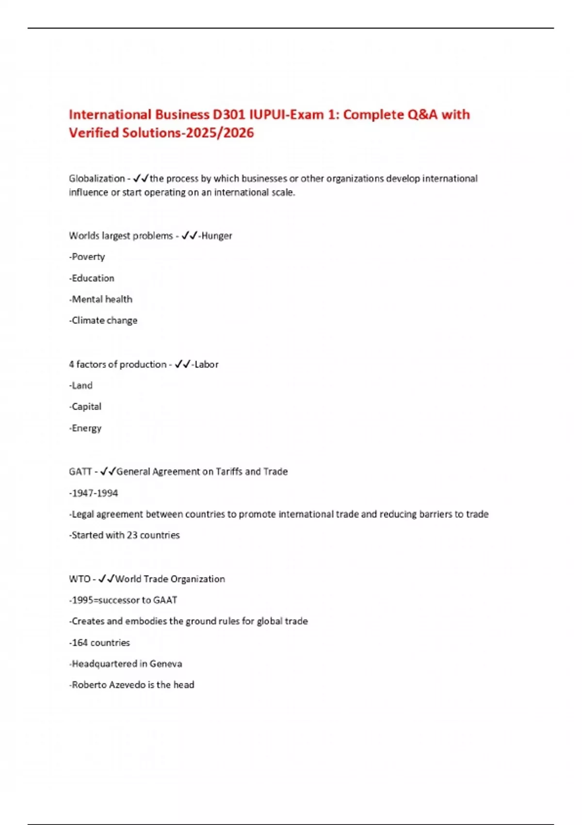International Business D301 IUPUI-Exam 1: Complete Q&A with Verified Solutions-2025/2026