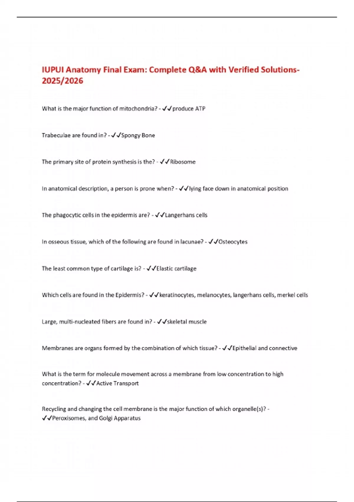 IUPUI Anatomy Final Exam: Complete Q&A with Verified Solutions 2025/2026