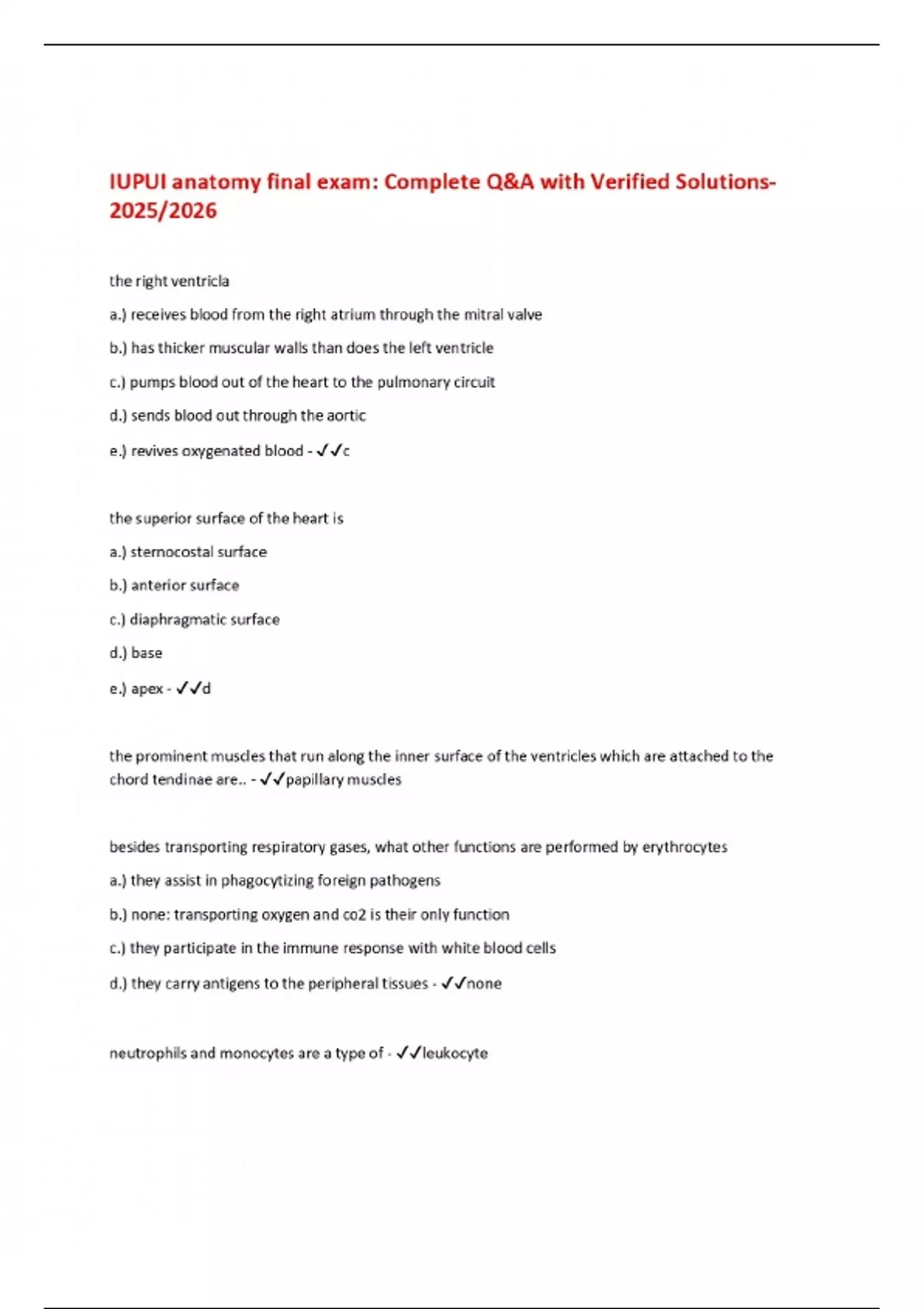 IUPUI anatomy final exam: Complete Q&A with Verified Solutions 2025/2026
