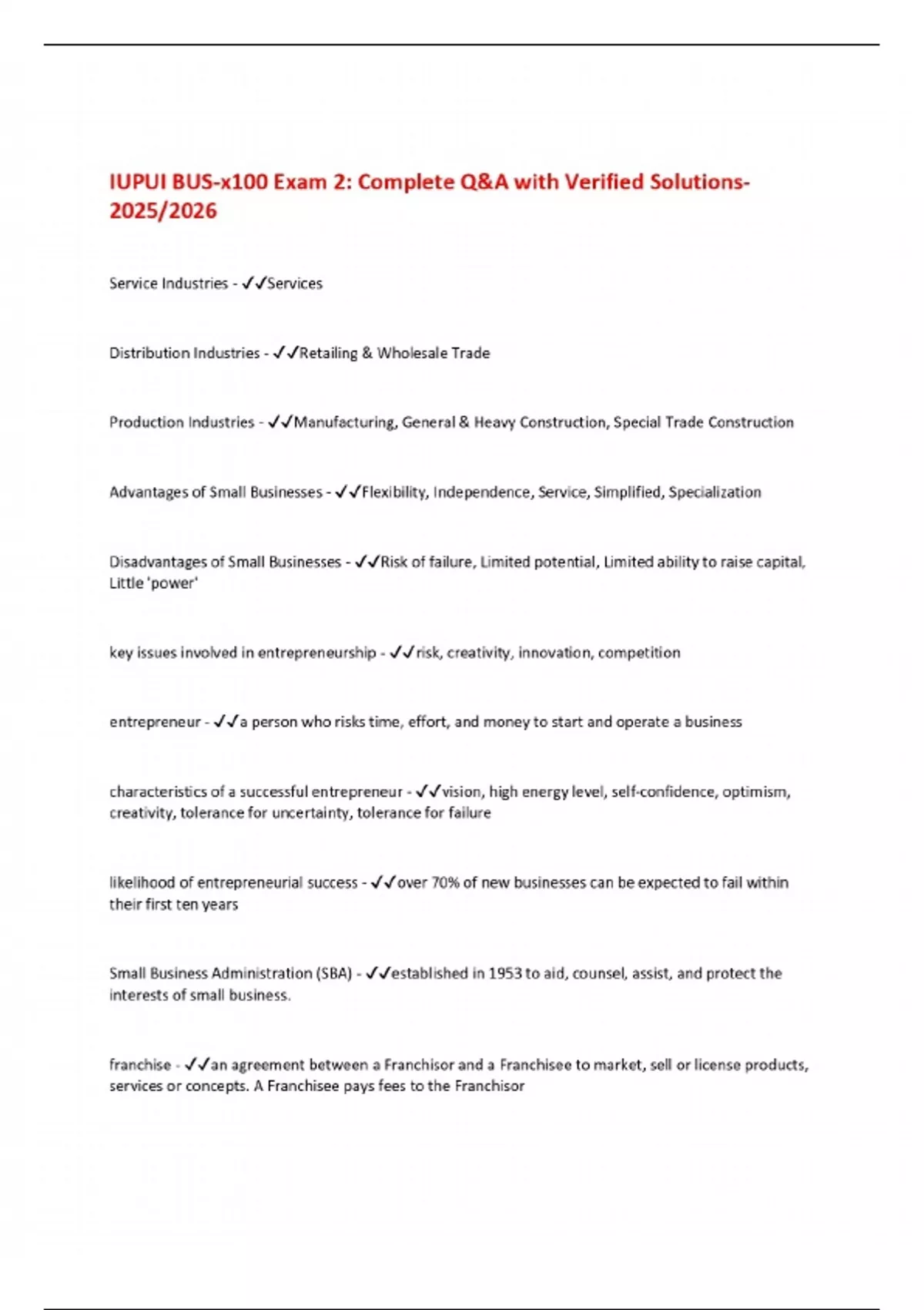 IUPUI BUS-x100 Exam 2: Complete Q&A with Verified Solutions 2025/2026