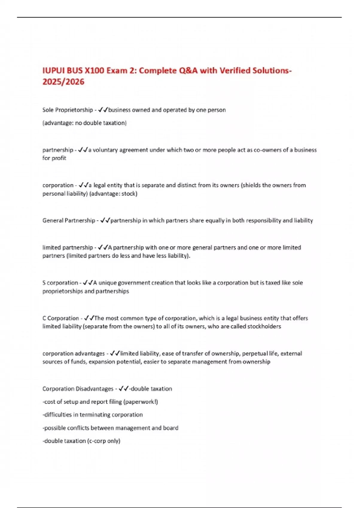 IUPUI BUS X100 Exam 2: Complete Q&A with Verified Solutions 2025/2026
