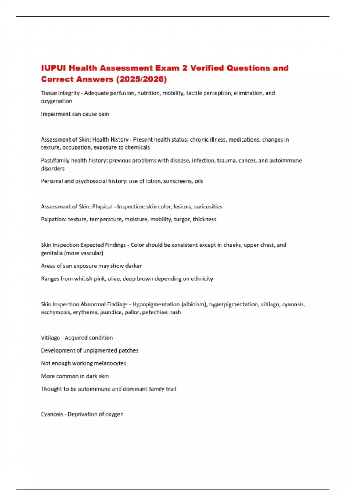 IUPUI Health Assessment Exam 2 Verified Questions and Correct Answers (2025/2026)