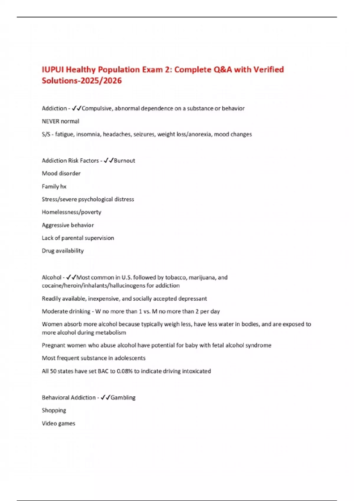 IUPUI Healthy Population Exam 2: Complete Q&A with Verified Solutions-2025/2026