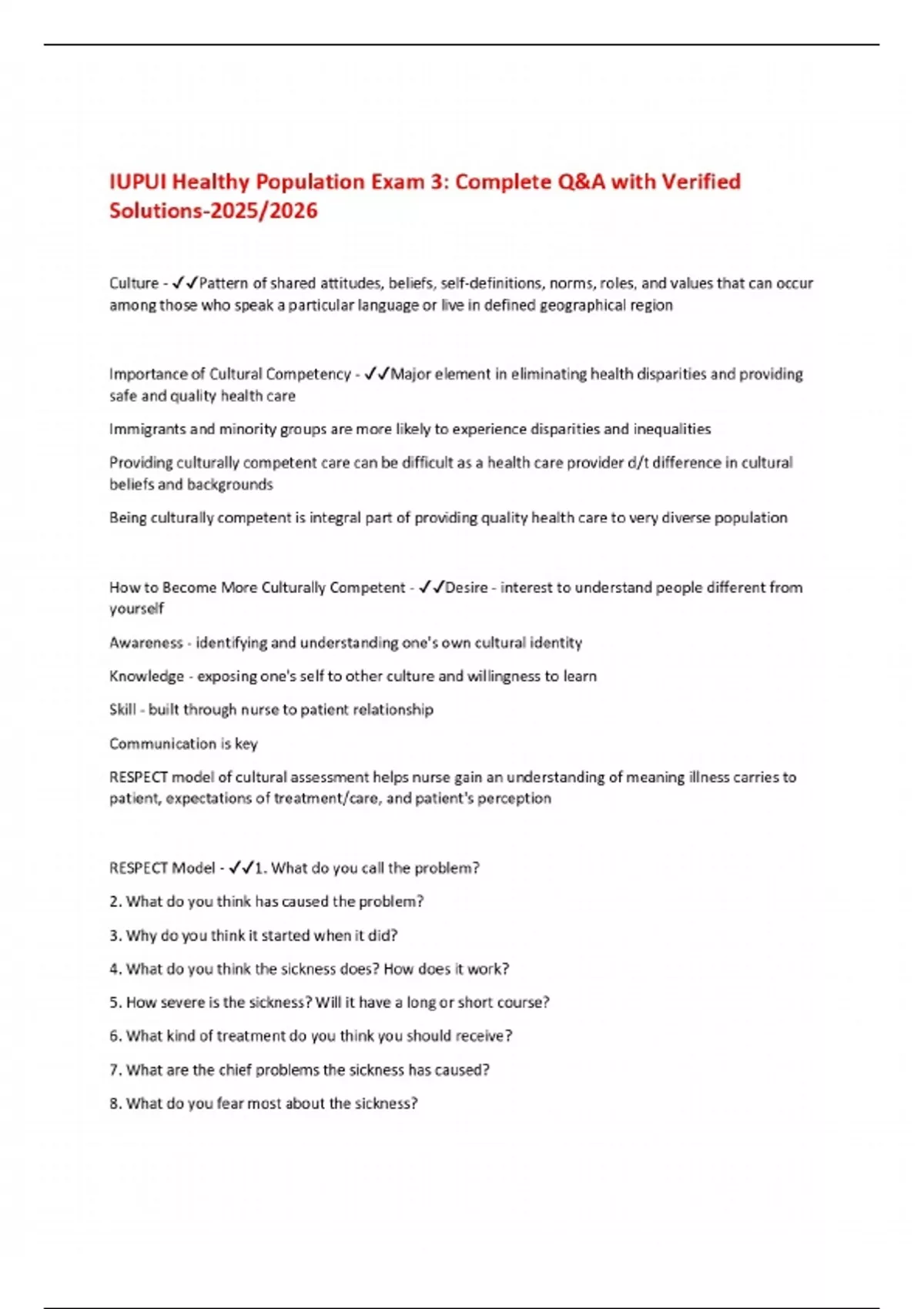 IUPUI Healthy Population Exam 3: Complete Q&A with Verified Solutions-2025/2026