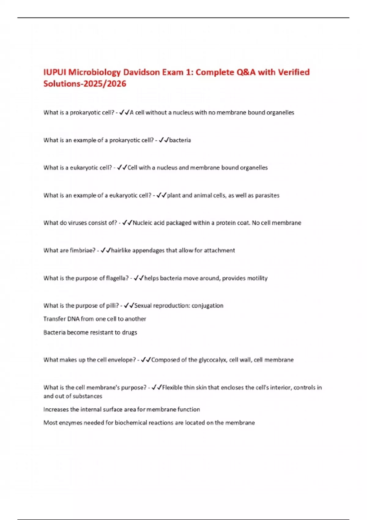 IUPUI Microbiology Davidson Exam 1: Complete Q&A with Verified Solutions-2025/2026