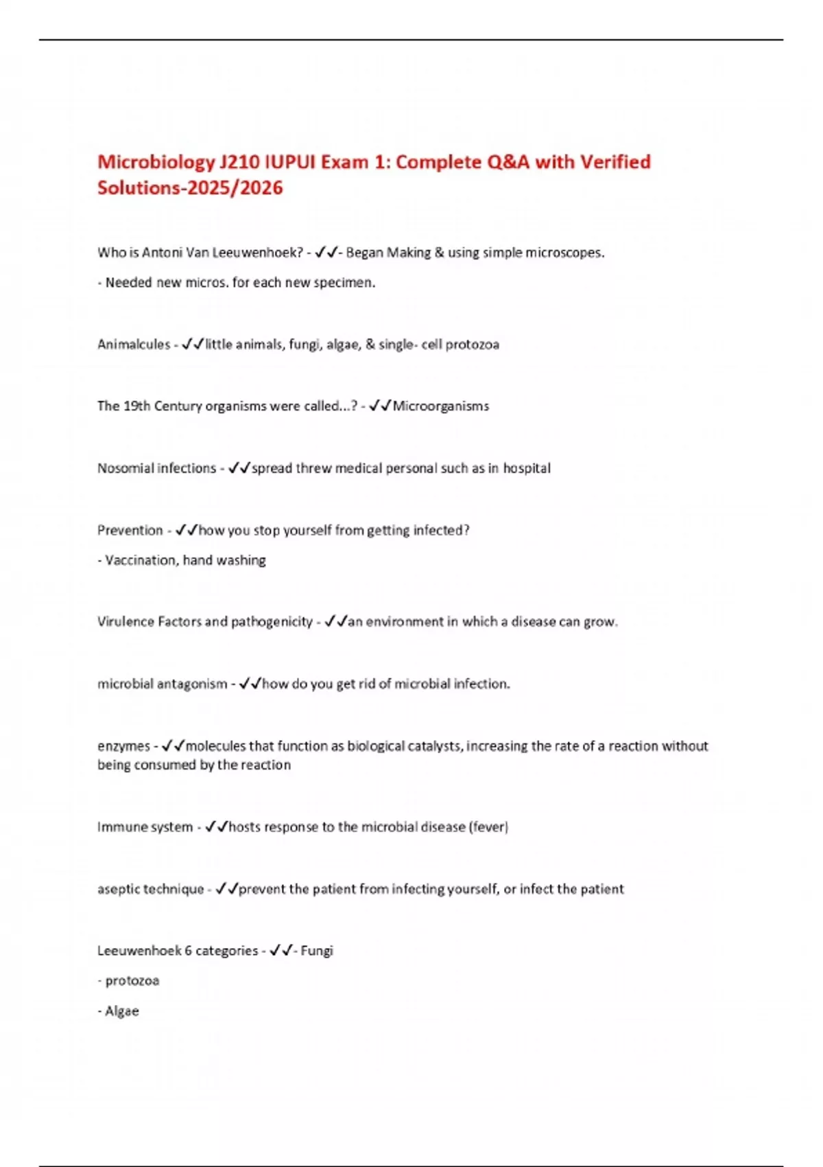 Microbiology J210 IUPUI Exam 1: Complete Q&A with Verified Solutions-2025/2026