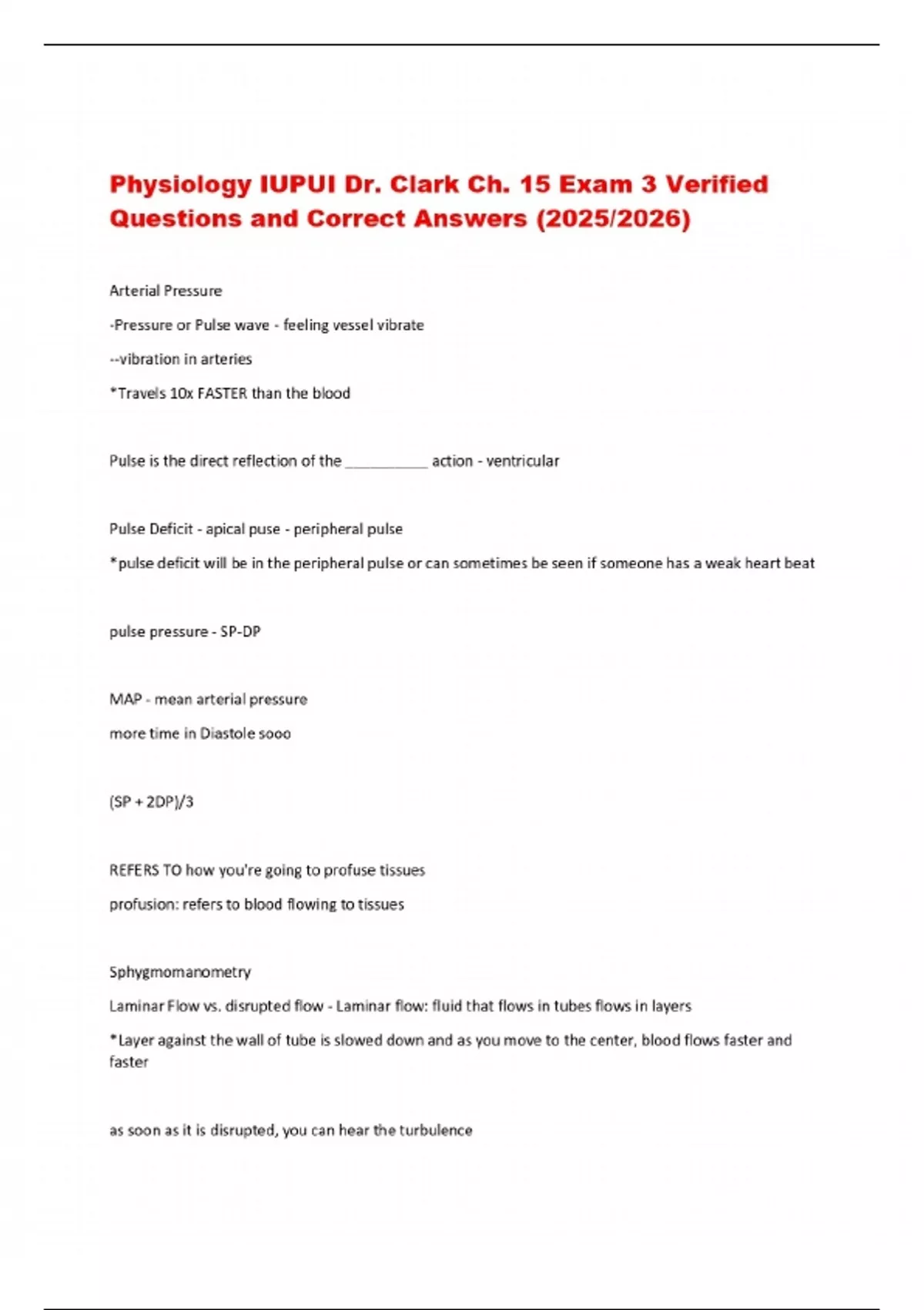 Physiology IUPUI Dr. Clark Ch. 15 Exam 3 Verified Questions and Correct Answers (2025/2026)