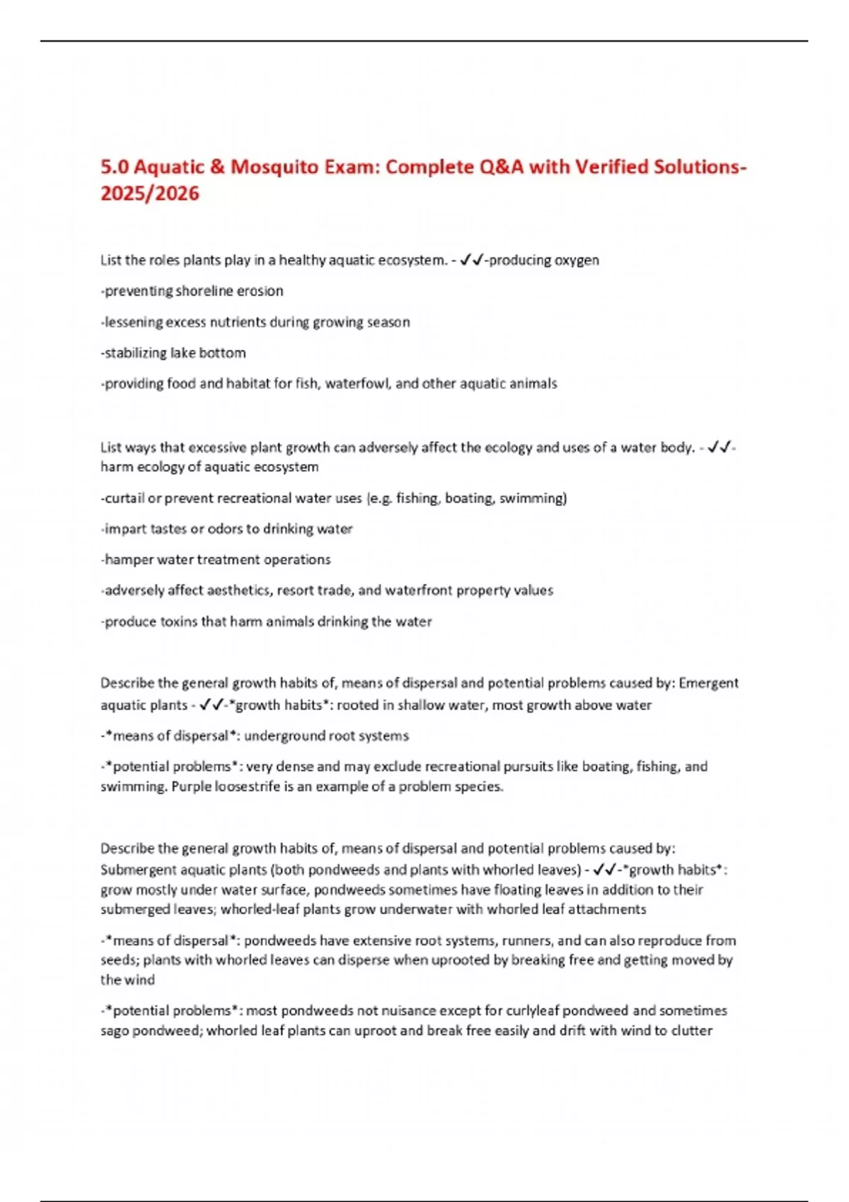 5.0 Aquatic & Mosquito Exam: Complete Q&A with Verified Solutions 2025/2026