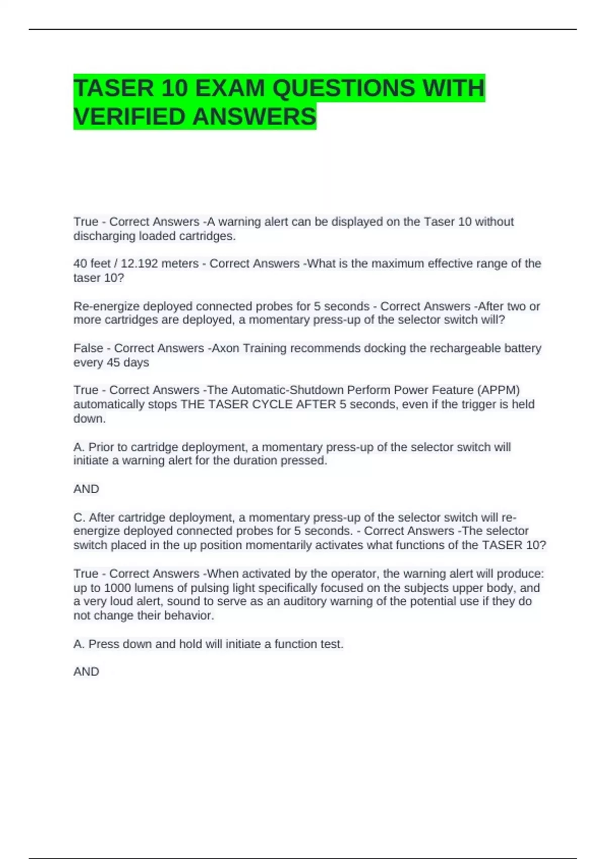 TASER 10 EXAM QUESTIONS WITH