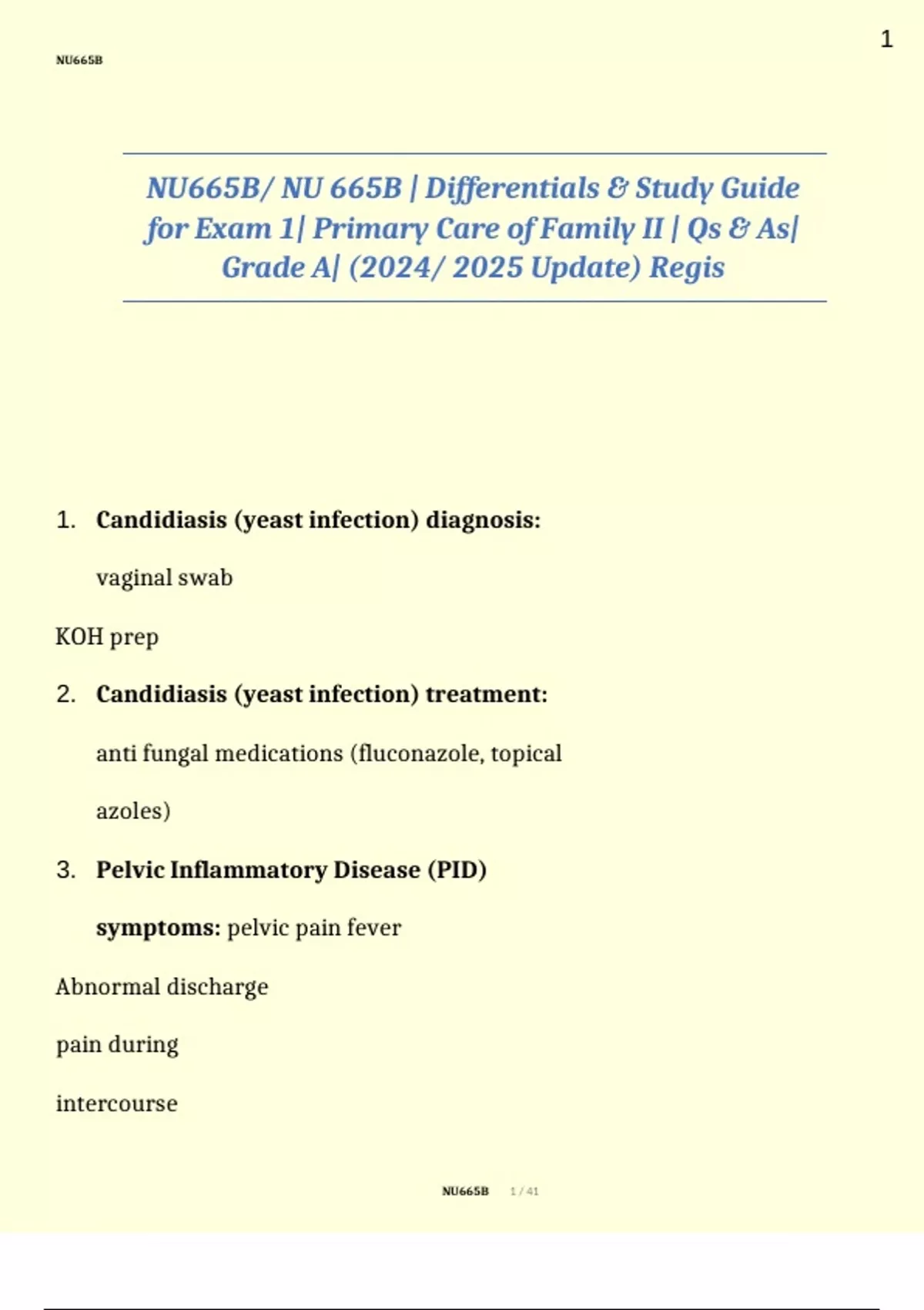 1. Candidiasis (yeast infection) diagnosis:
