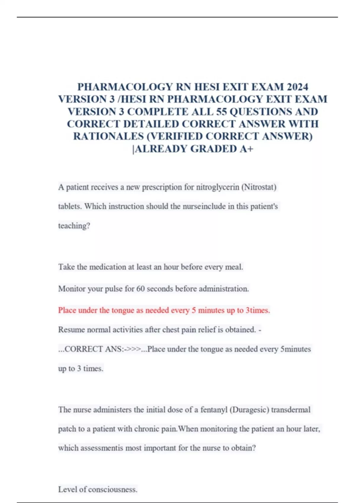 Get ready to ace your pharmacology exit exam with confidence! Our HESI RN Pharmacology Exit Exam Version 3 is a comprehensive study resource designed to help you succeed. This invaluable tool is tailored to the 2025 exam format and includes rationales to enhance your understanding of key concepts. **What You'll Get:** * A comprehensive question bank that mimics the actual exam, covering essential pharmacology topics * In-depth rationales for each question, providing insight into correct answers and helping you learn from your mistakes * Realistic practice questions that simulate the exam experience, allowing you to assess your knowledge and identify areas for improvement * Up-to-date content aligned with the latest exam format and standards * A trusted study resource to ensure you're well-prepared for the pharmacology exit exam **Why Choose This Product?** * Improve your critical thinking and problem-solving skills with our challenging practice questions * Enhance your understanding of complex pharmacology concepts with clear and concise rationales * Boost your confidence and reduce exam anxiety with thorough preparation * Stay ahead of the curve with our regularly updated content, ensuring you're always prepared for the latest exam format **Order now and take the first step towards passing your pharmacology exit exam with flying colors!**