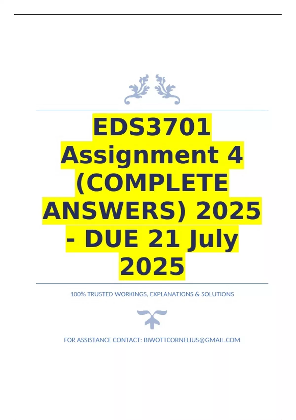 EDS3701 Assignment 4 (COMPLETE ANSWERS) 2025 - DUE 21 July 2025