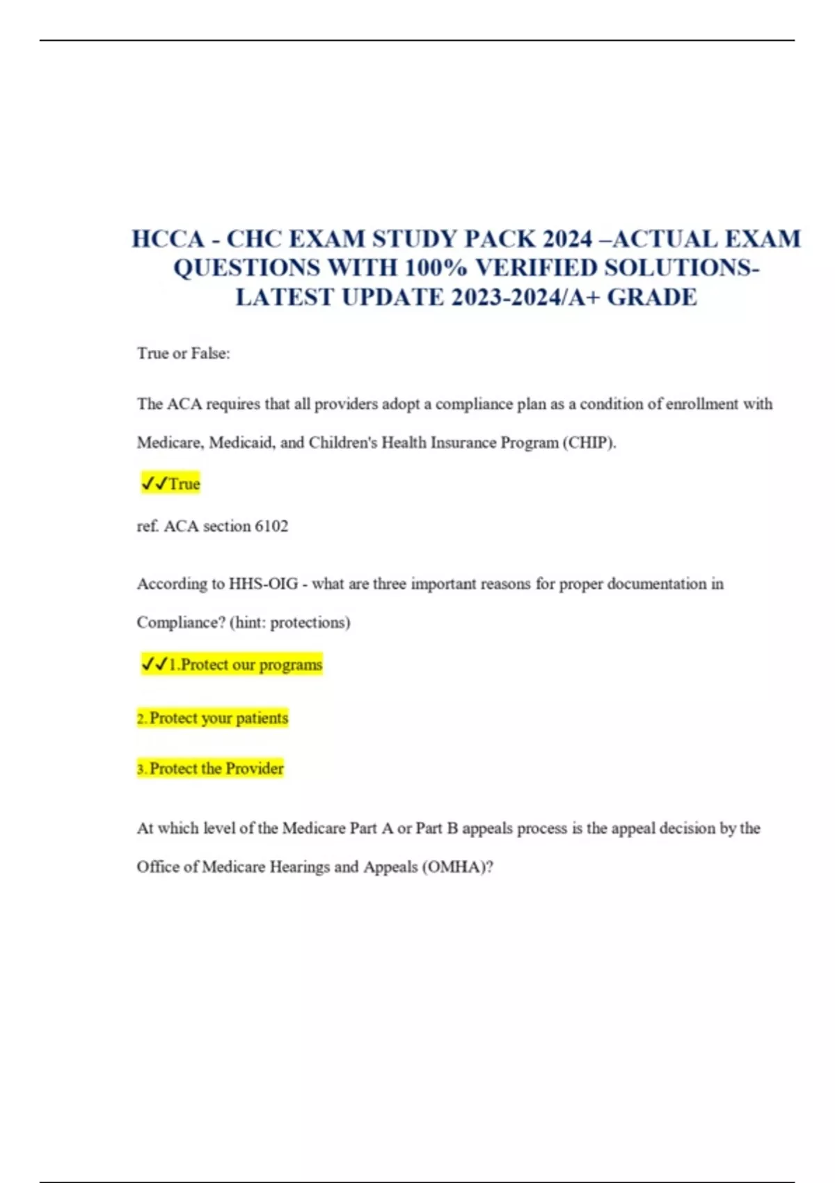 HCCA - CHC EXAM STUDY PACK 2025 –ACTUAL EXAM QUESTIONS | 100% VERIFIED SOLUTIONS | LATEST UPDATE 2025 |A+ GRADE
