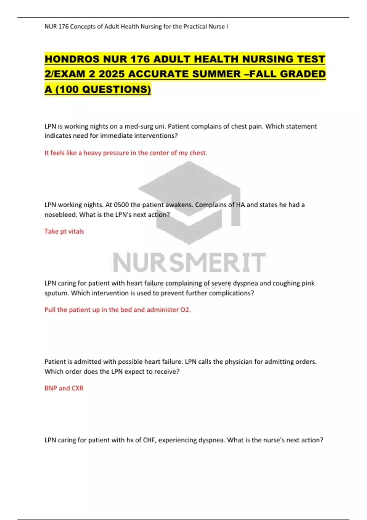 HONDROS NUR 176 ADULT HEALTH NURSING TEST