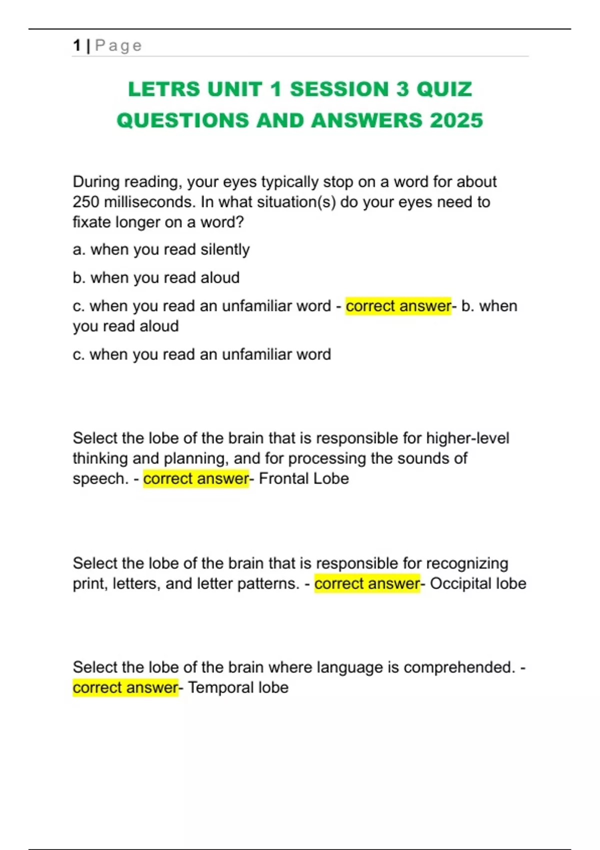 LETRS UNIT 1 SESSION 3 QUIZ QUESTIONS AND ANSWERS 2025