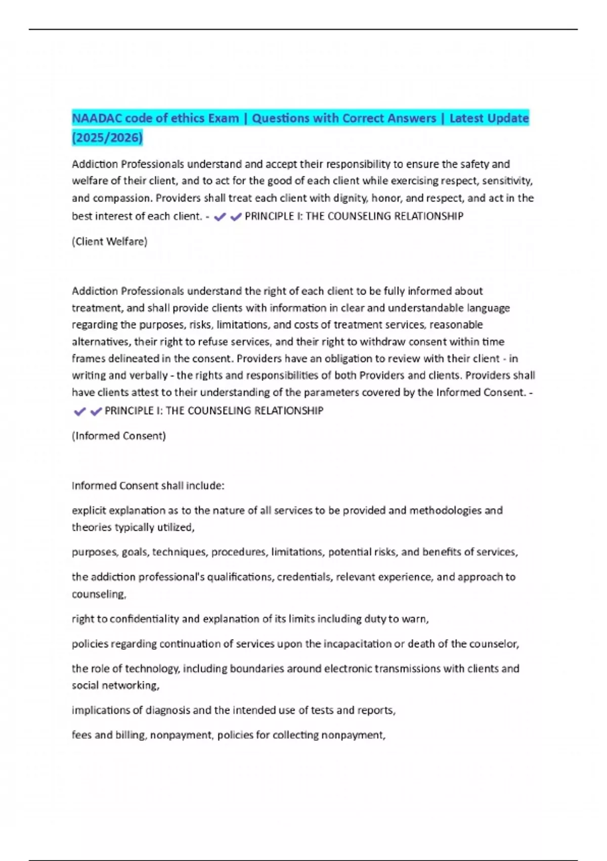 NAADAC code of ethics Exam | Questions with Correct Answers | Latest Update (2025/2026)