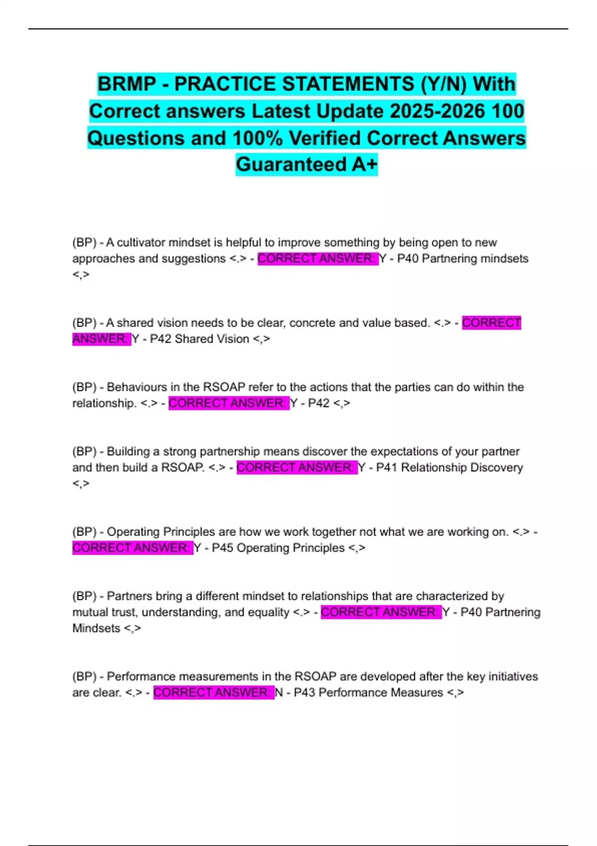 approaches and suggestions <.> - CORRECT ANSWER: Y - P40 Partnering mindsets