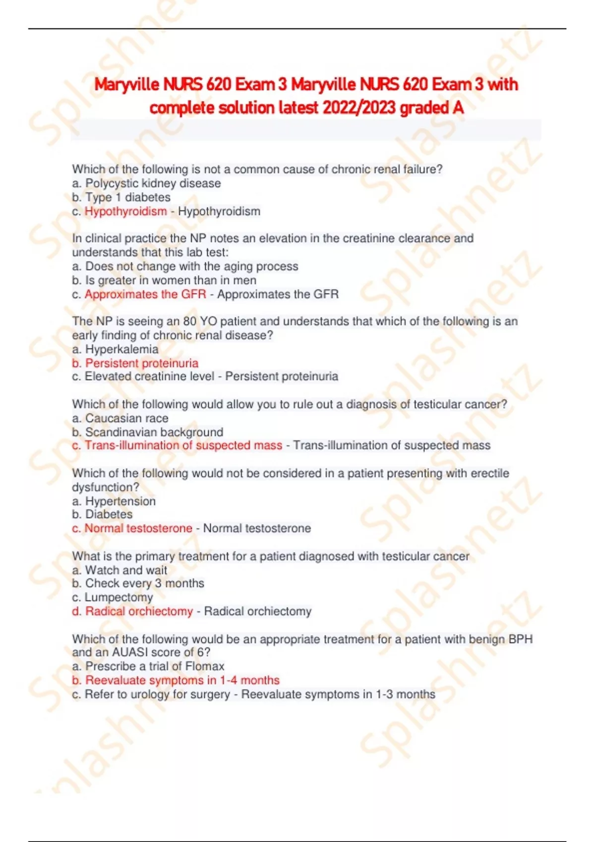 Maryville NURS 620 Exam 3 Maryville NURS 620 Exam 3 with