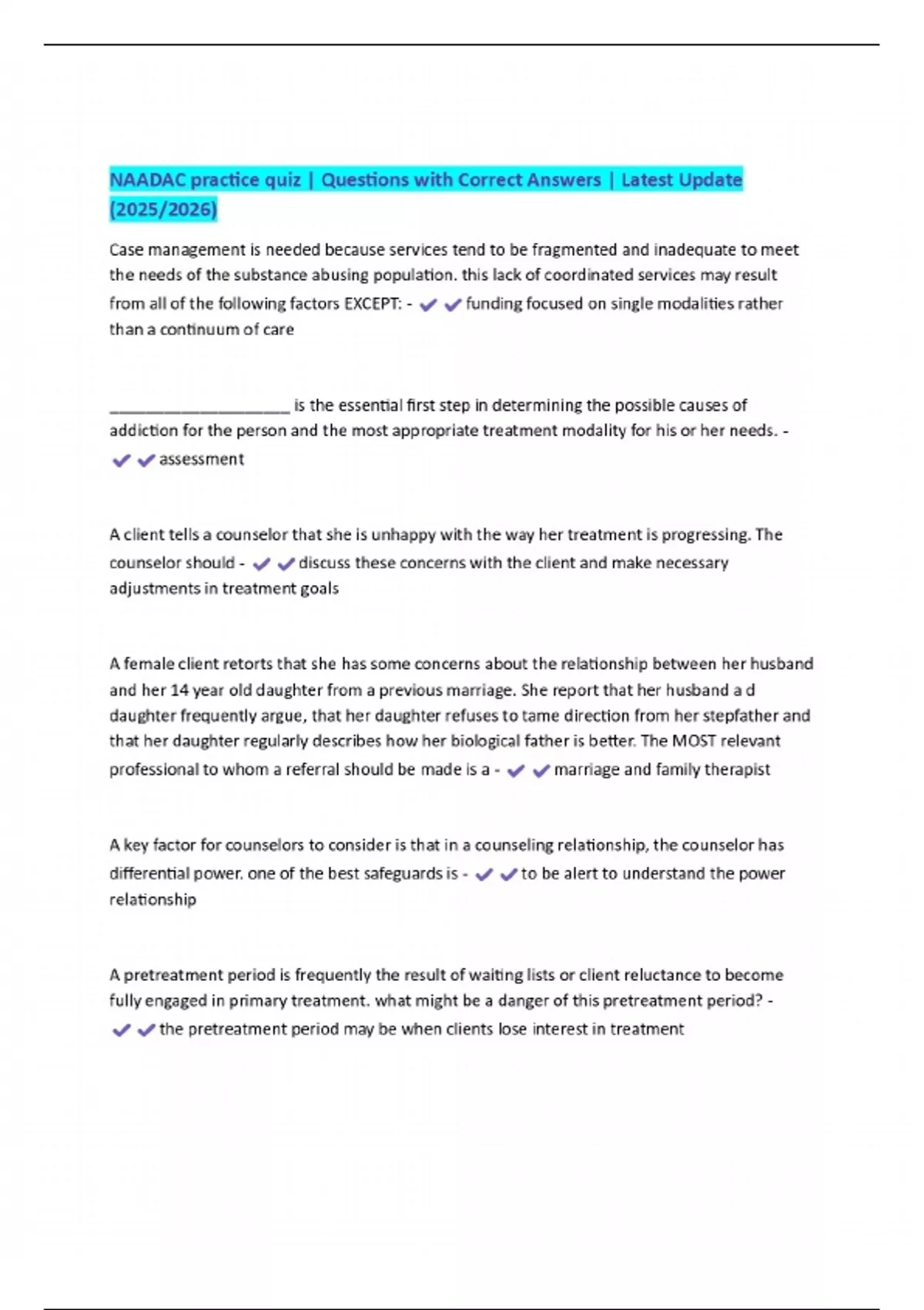 NAADAC practice quiz | Questions with Correct Answers | Latest Update (2025/2026)