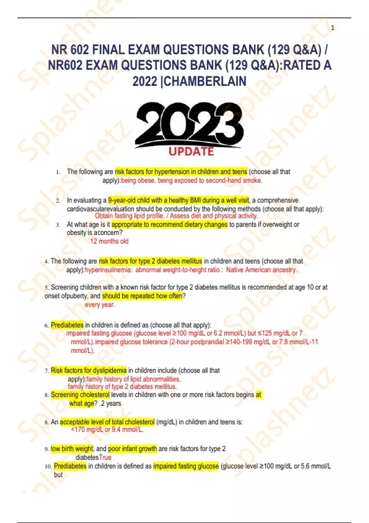 NR 602 FINAL EXAM QUESTIONS BANK (129 Q&A) /