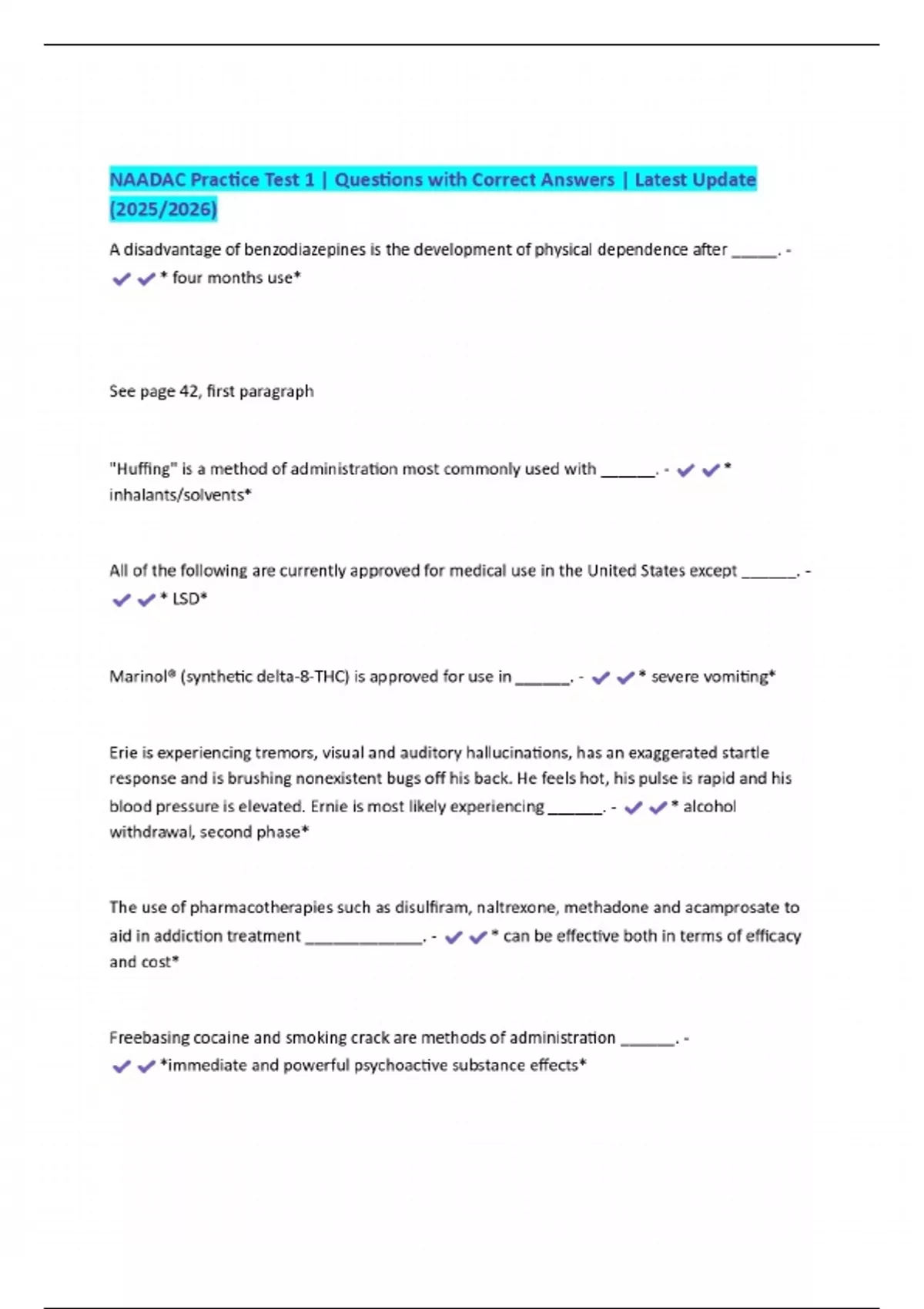 naadac practice test 1 questions with correct an