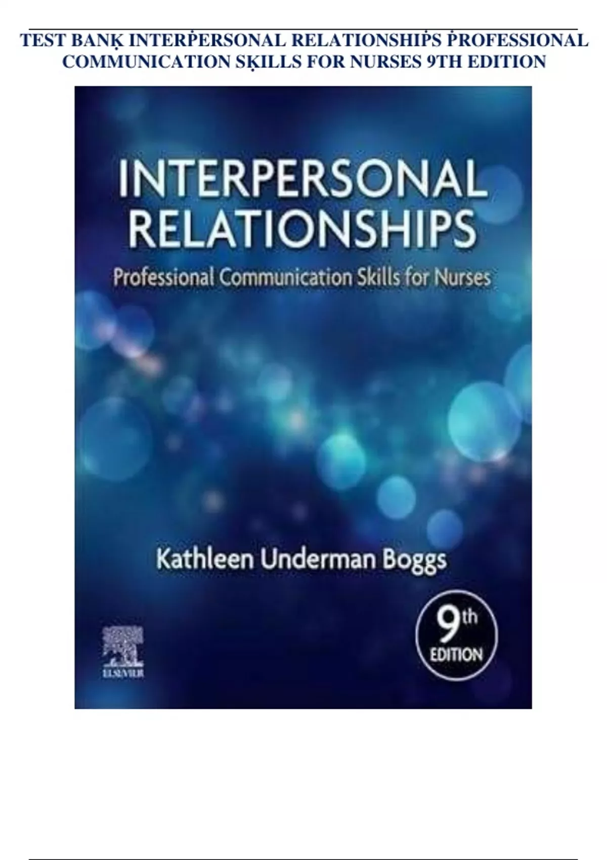 TEST BANK For Interpersonal Relationships Professional Communication Skills for Nurses 9th Edition by Elizabeth Arnold, Kathleen Boggs||||||
