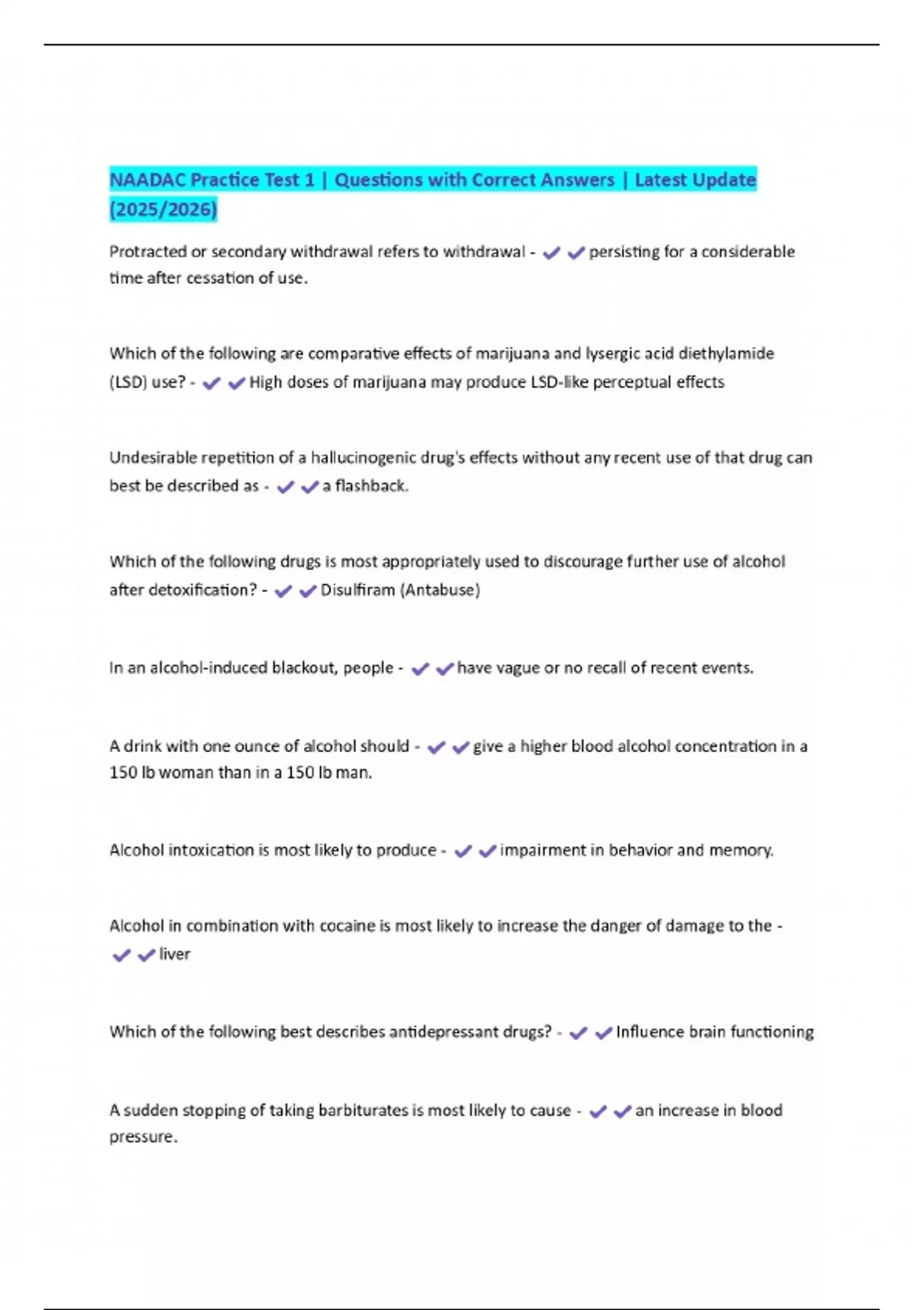 NAADAC Practice Test 1 | Questions with Correct Answers | Latest Update (2025/2026)
