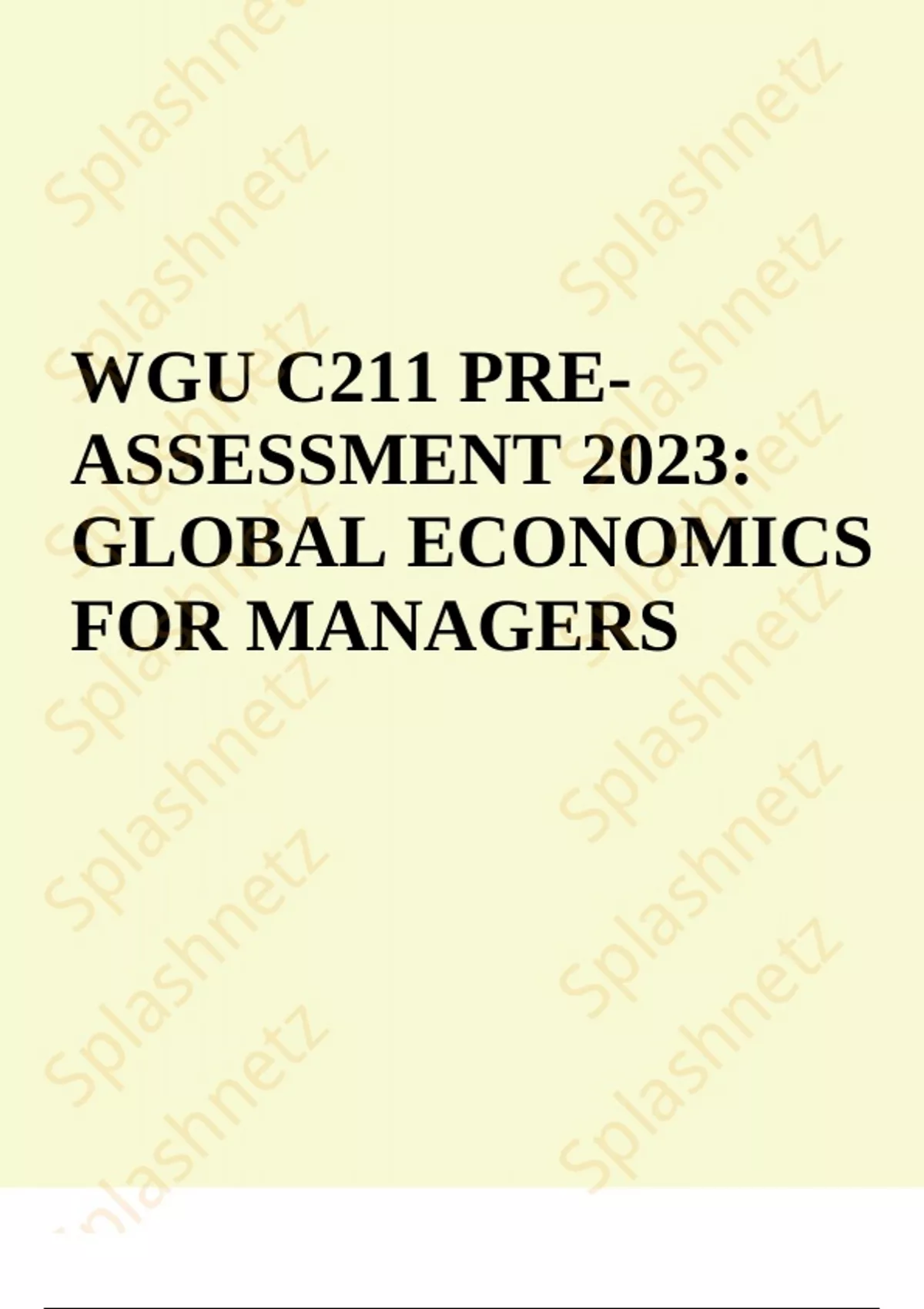 PRE-ASSESSMENT: GLOBAL ECONOMICS FOR MANAGERS