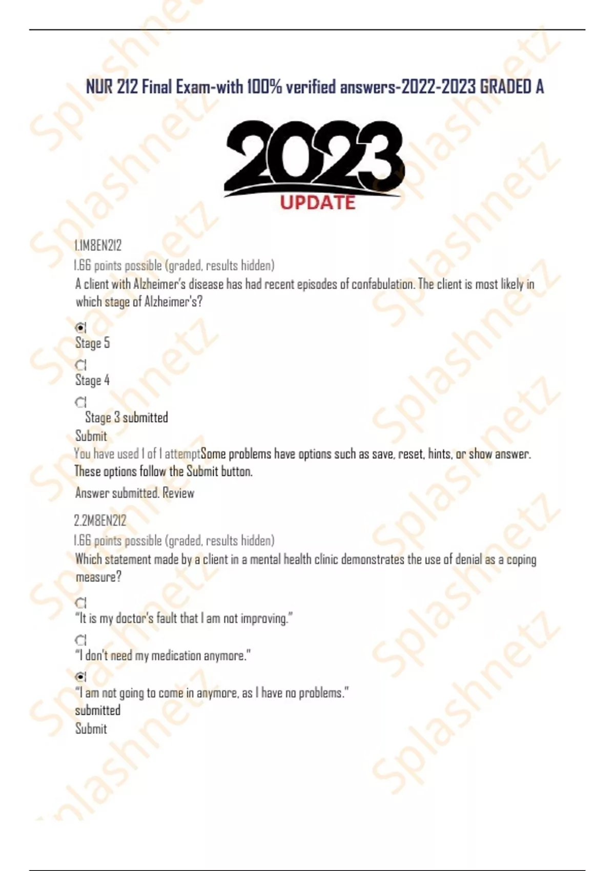 NUR 212 Final Exam-with 100% verified answers-2022-2023 GRADED A