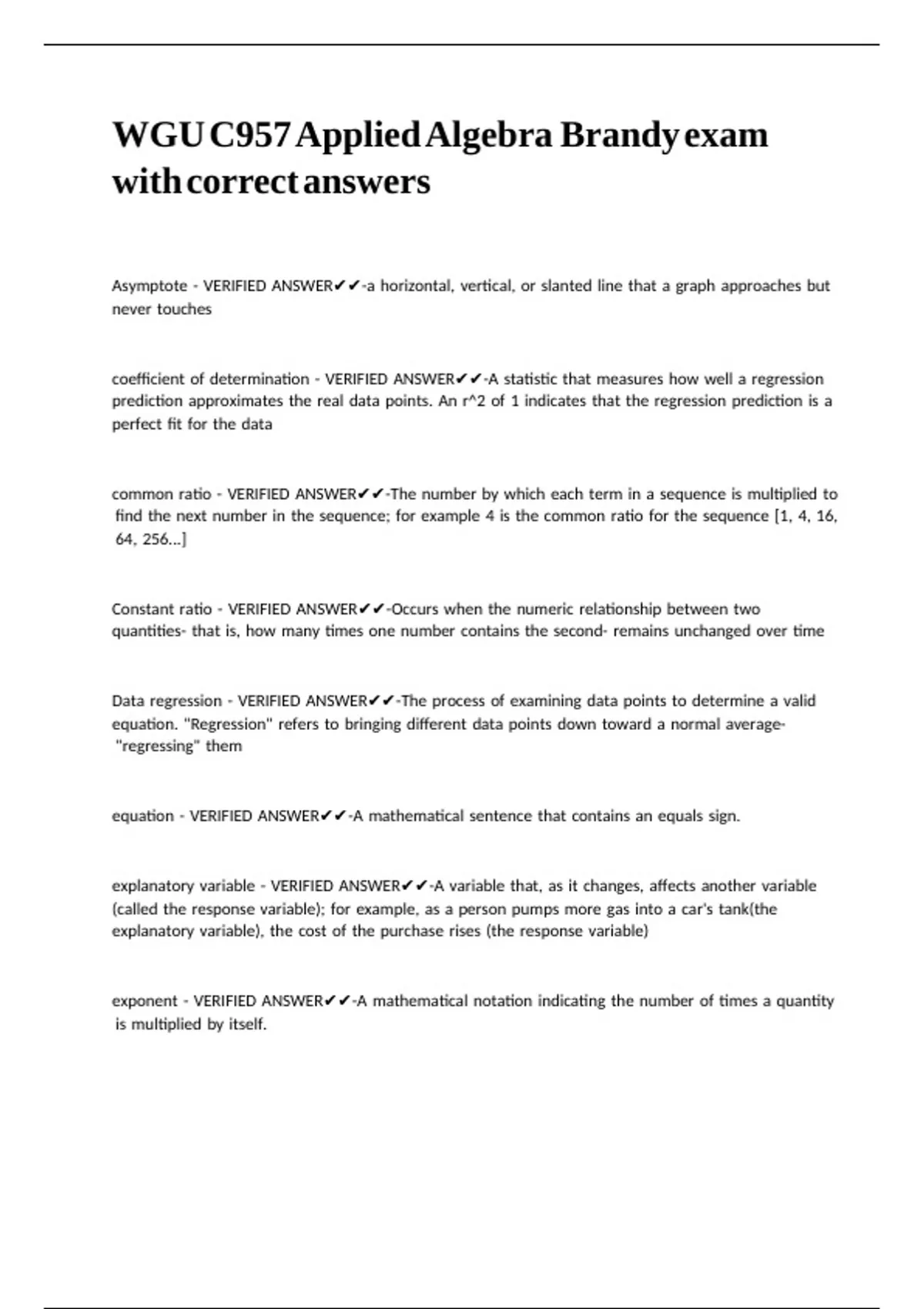 coefficient |of |determination |- |VERIFIED |ANSWER✔✔-A |statistic |that |measures |how |well |a |regression |