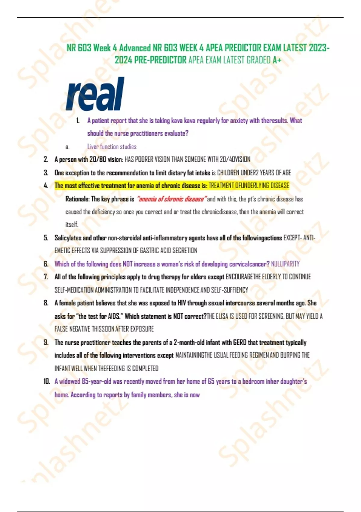 NR 603 Week 4 Advanced NR 603 WEEK 4 APEA PREDICTOR EXAM LATEST 2023-