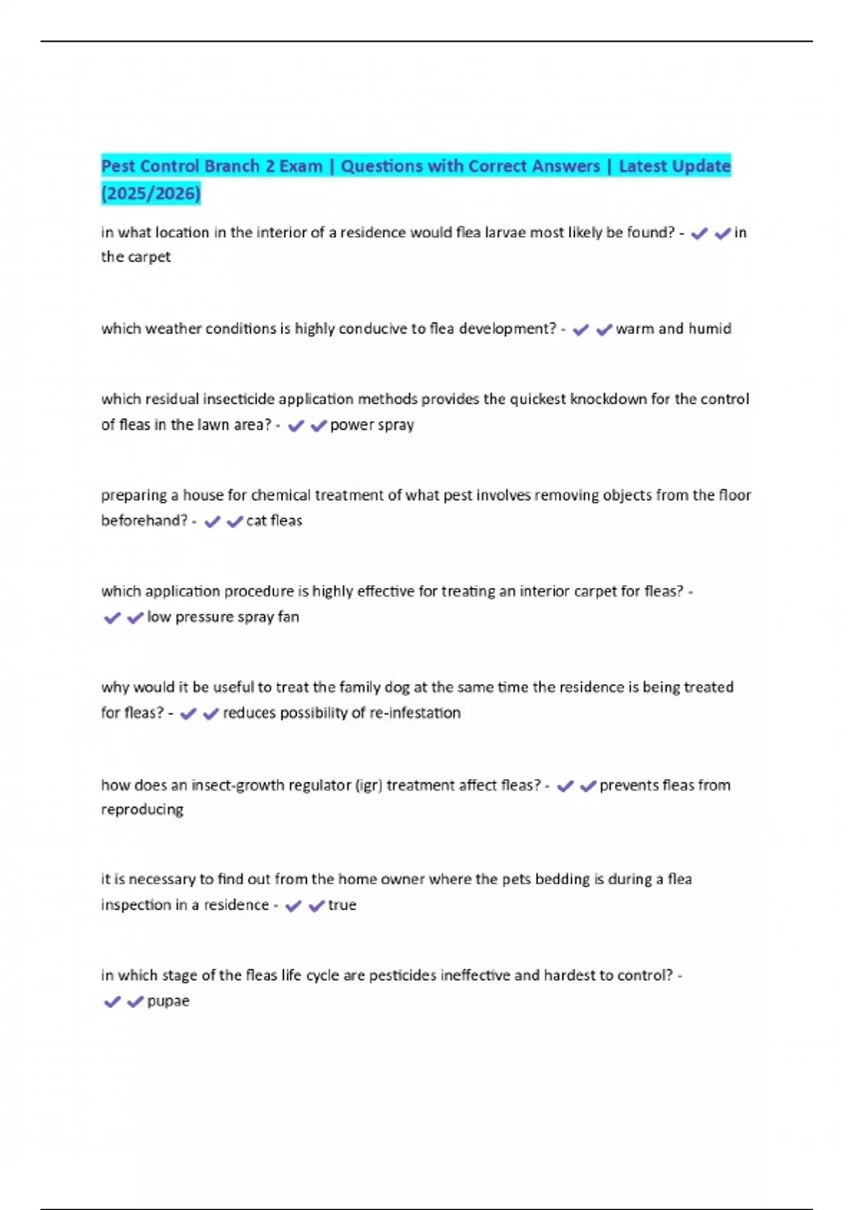 Pest Control Branch 2 Exam | Questions with Correct Answers | Latest Update (2025/2026)