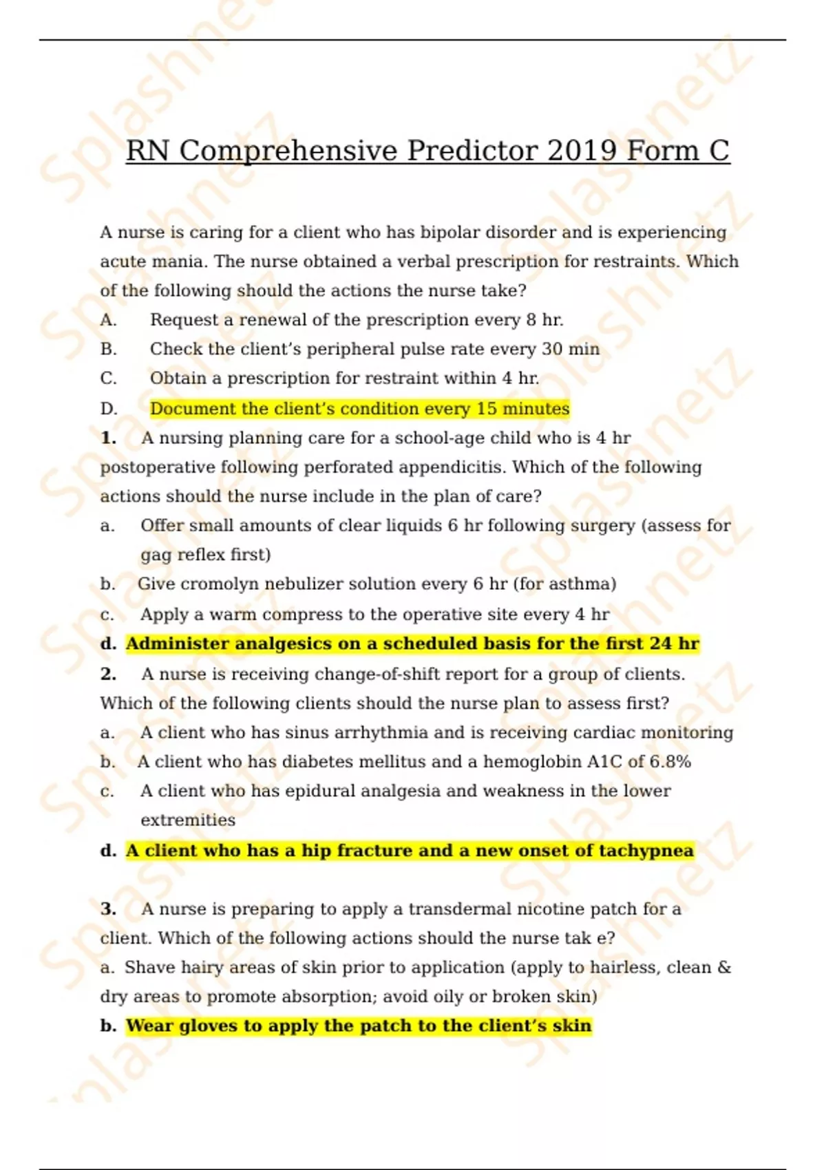 RN Comprehensive Predictor 2019 Form C