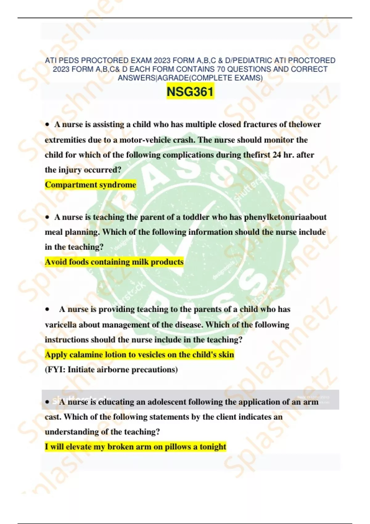 ATI PEDS PROCTORED EXAM 2023 FORM A,B,C & D/PEDIATRIC ATI PROCTORED