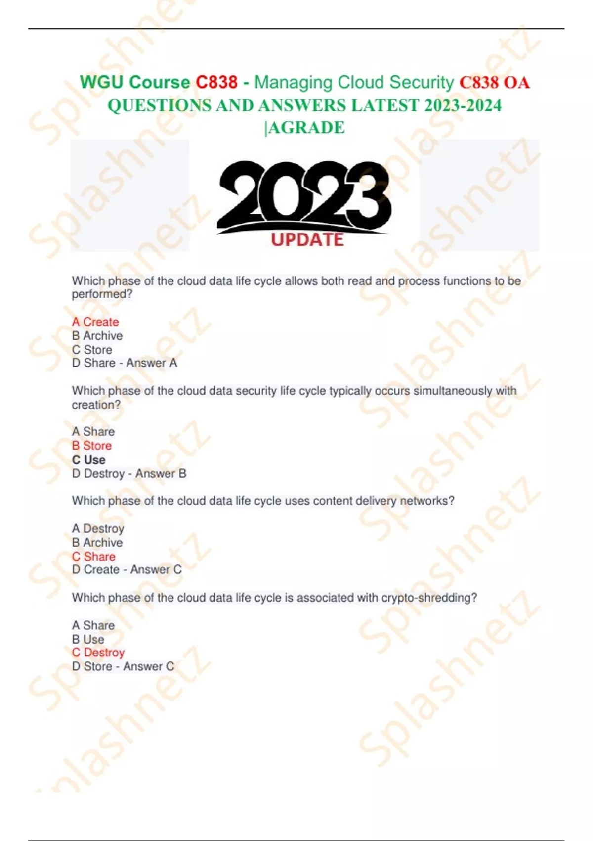 WGU Course C838 - Managing Cloud Security C838 OA
