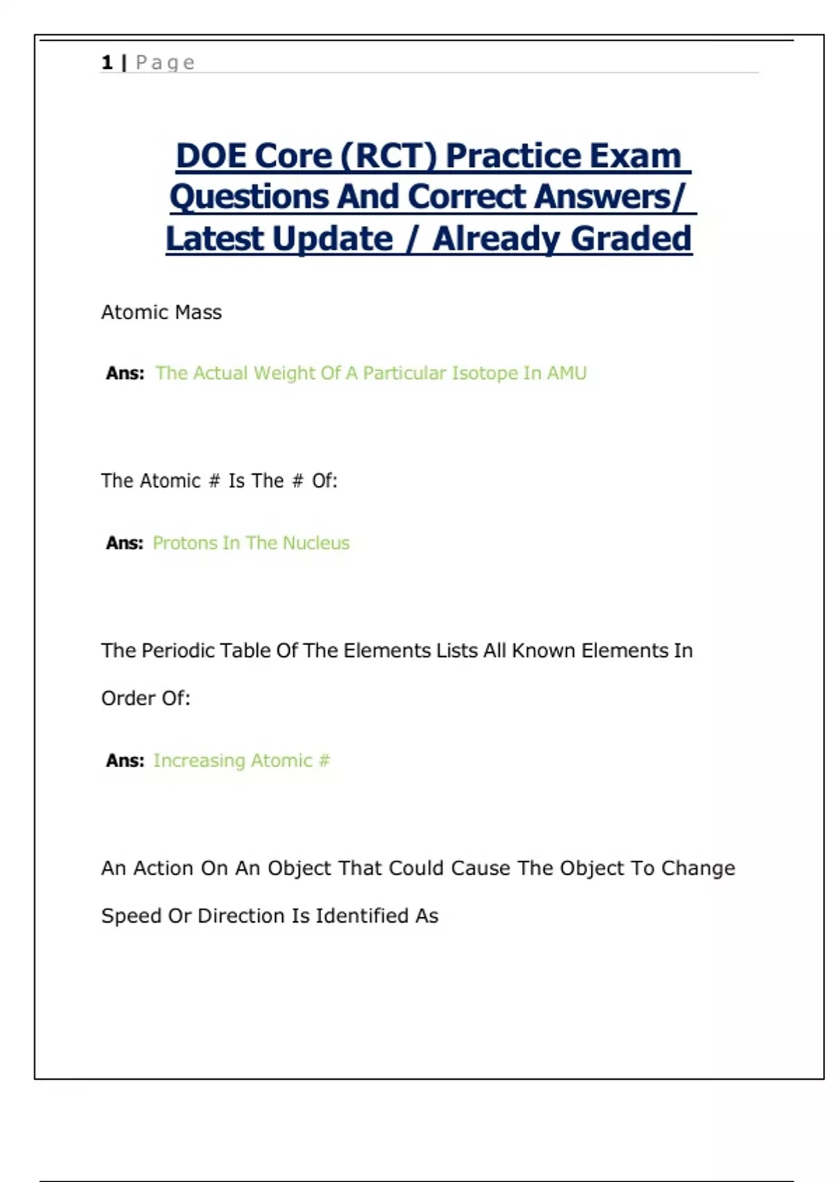 DOE Core (RCT) Practice Exam Questions and Correct Answers/ Latest Update / Already Graded