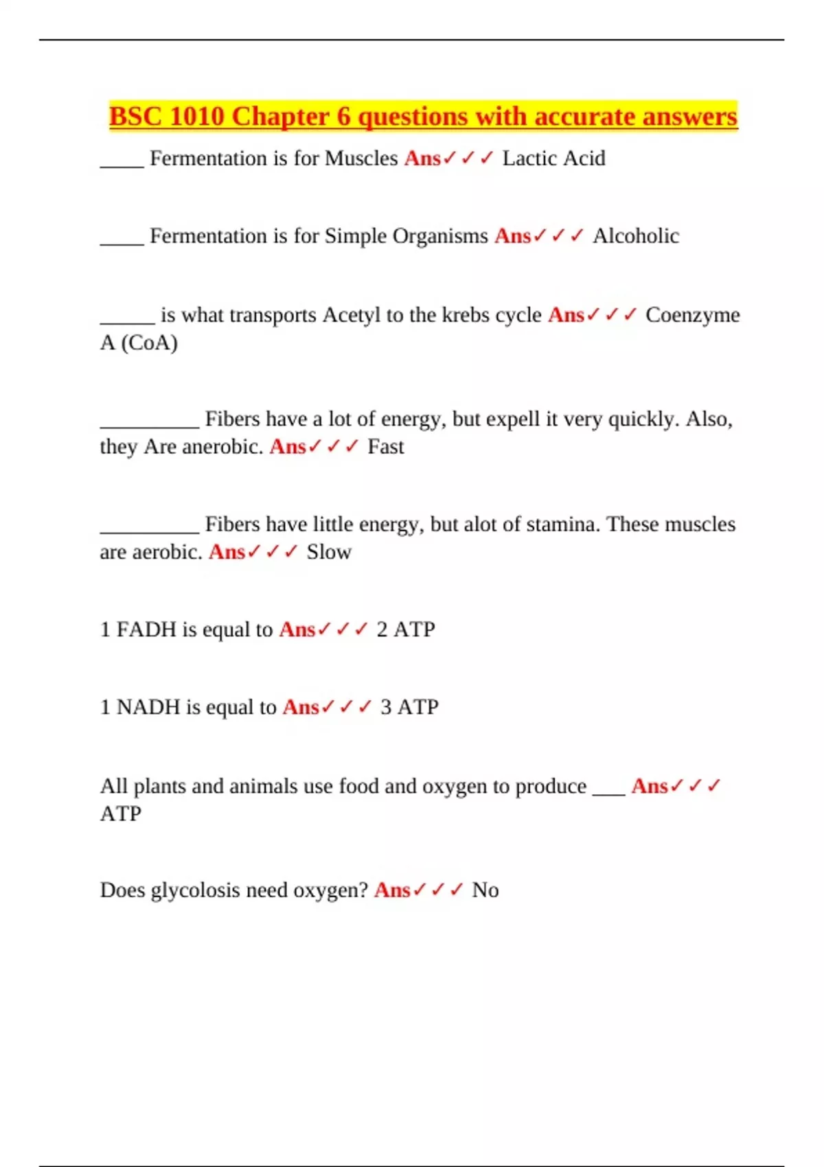 ____ Fermentation is for Muscles Ans✓✓✓ Lactic Acid