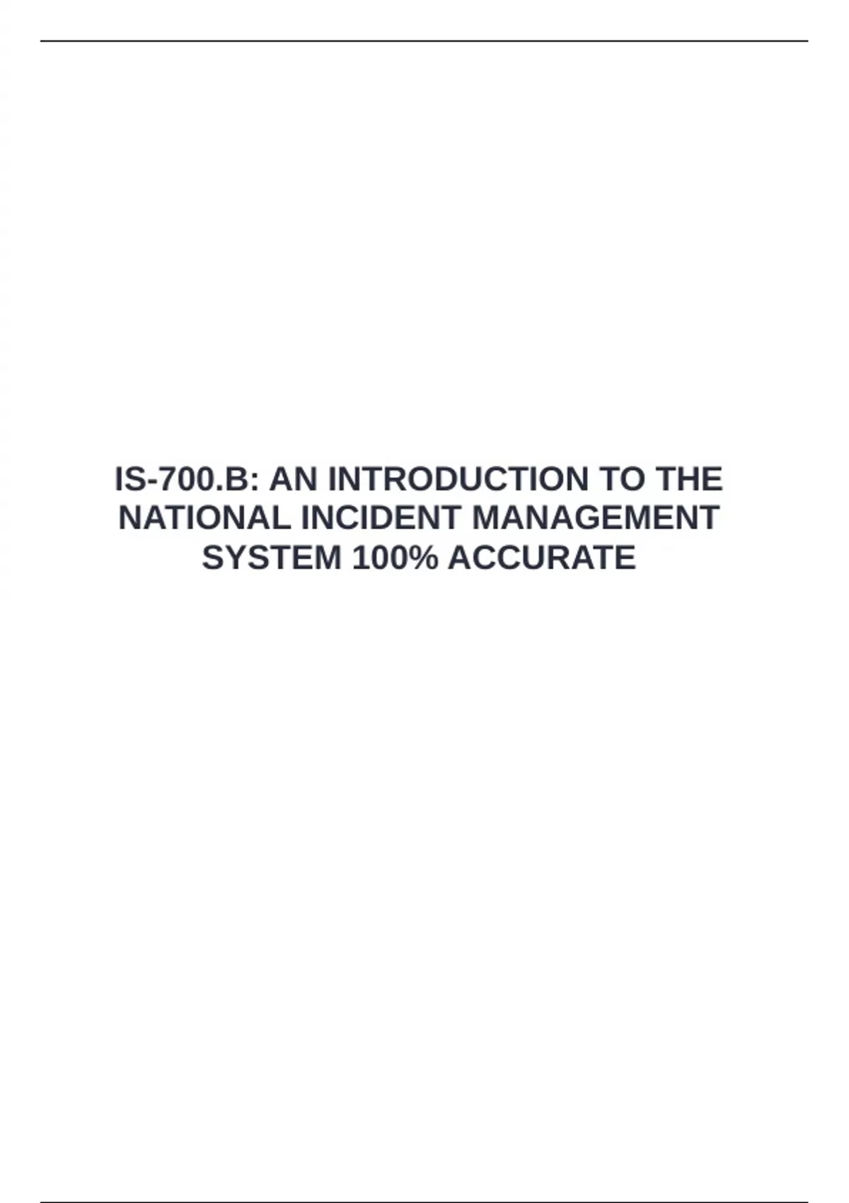 IS-700.B: AN INTRODUCTION TO THE NATIONAL INCIDENT MANAGEMENT SYSTEM 100% ACCURATE