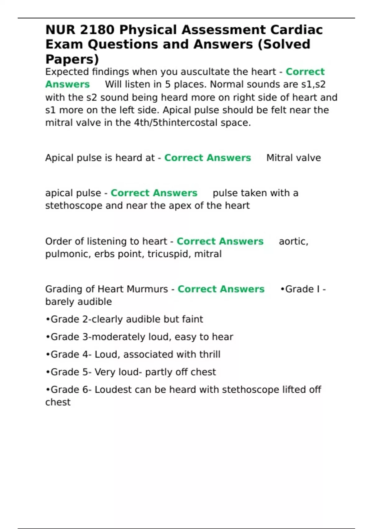 Order of listening to heart - Correct Answers ✅aortic,