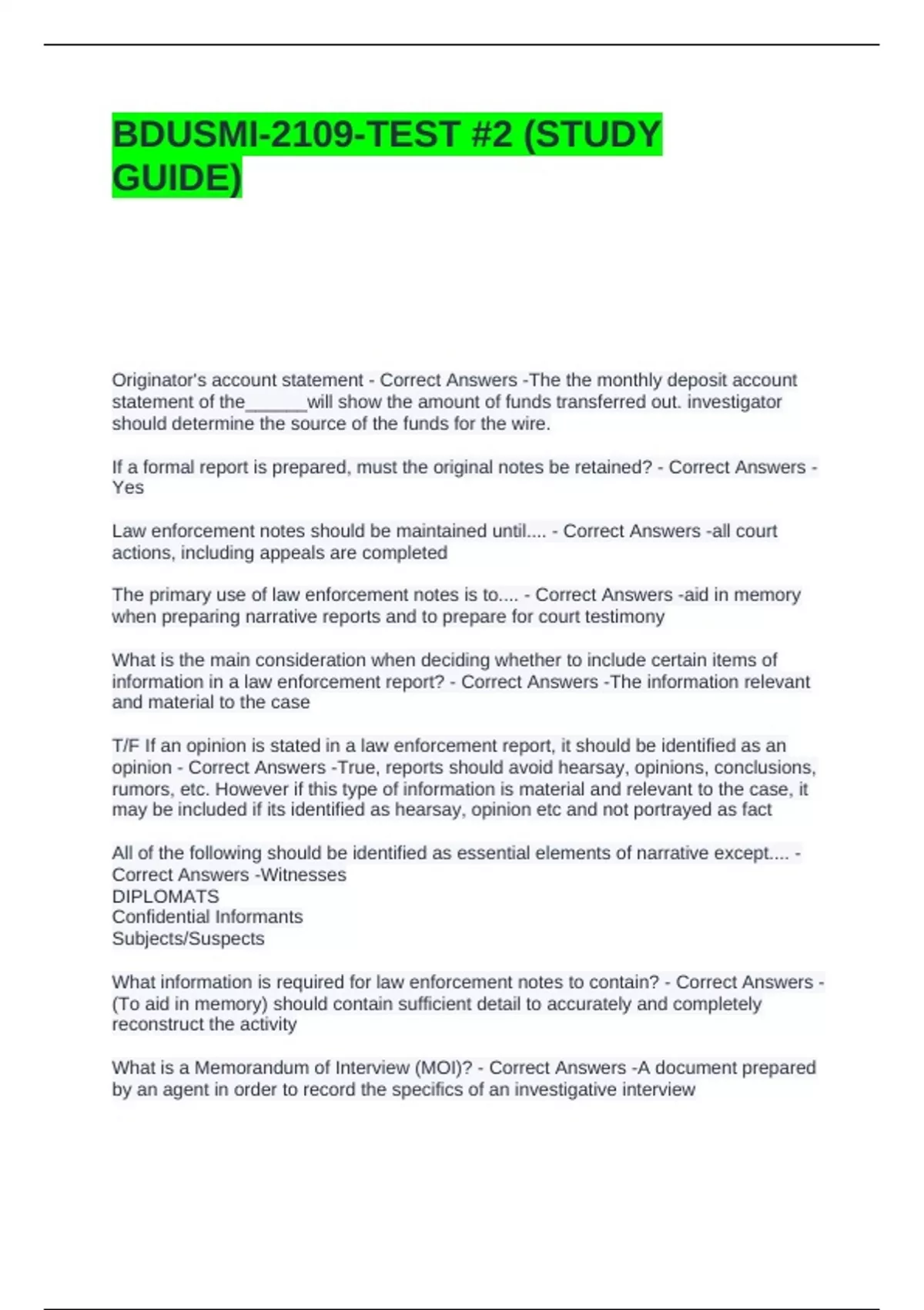 What is a Memorandum of Interview (MOI)? - Correct Answers -A document prepared
