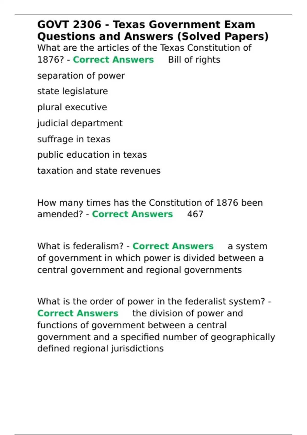 , GOVT 2306 - Texas Government Exam